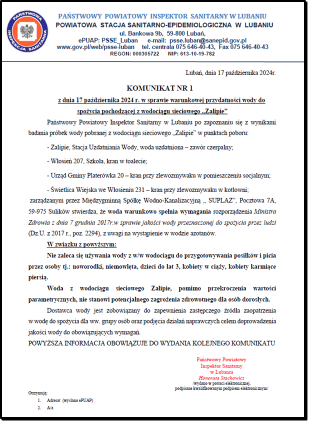 Komunikat nr 1 PPIS w Lubaniu
